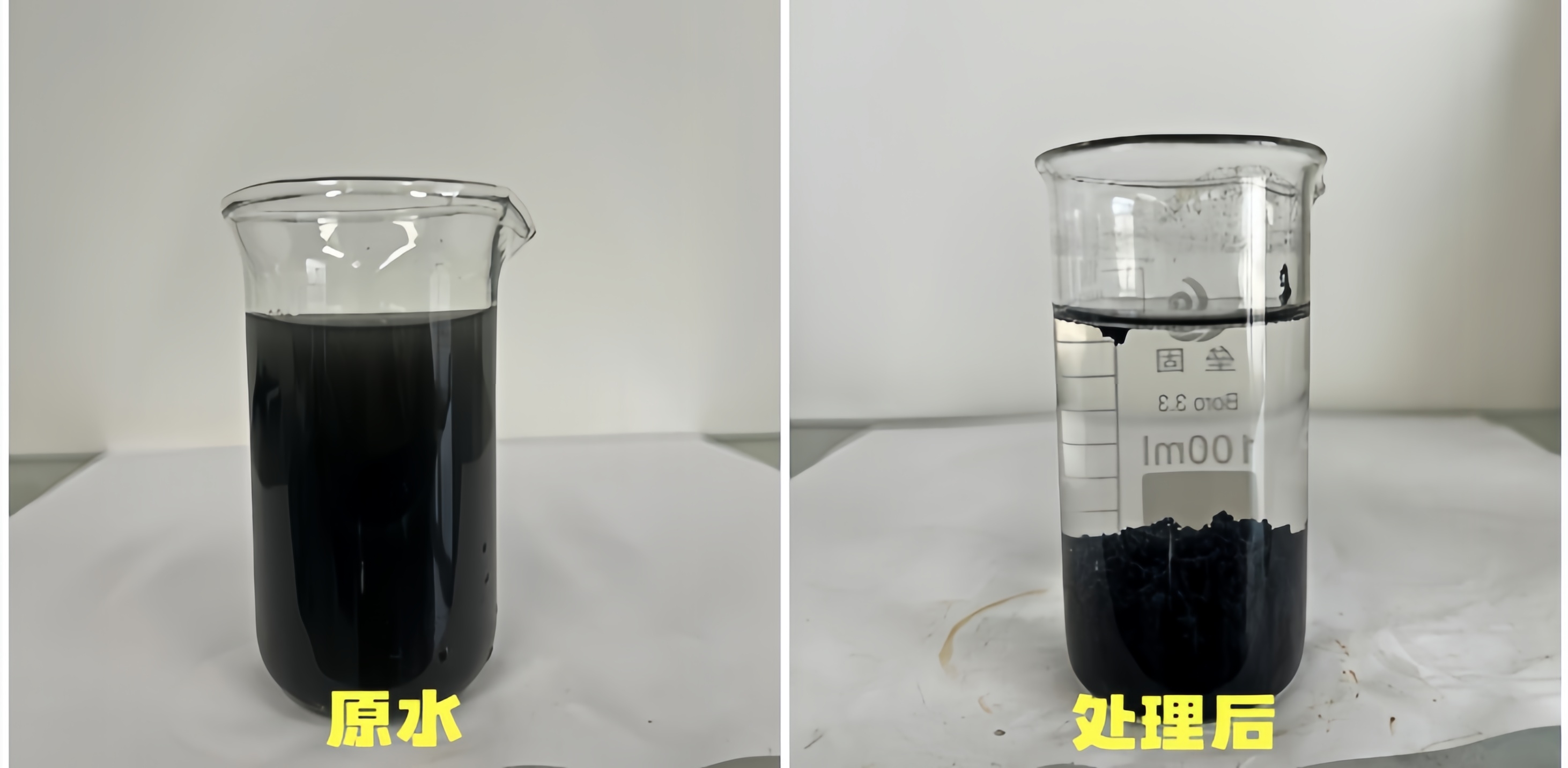 一是乳化体系稳定性强:废水中的表面活性剂形成稳定保护膜,将油分、颜料颗粒包裹其中,构成油 - 水 - 固三相乳化液。油分与固体颗粒以微小分散相悬浮于水中,传统静置沉淀或单一药剂处理难以破坏该乳化结构,导致出水仍保持浑浊状态。