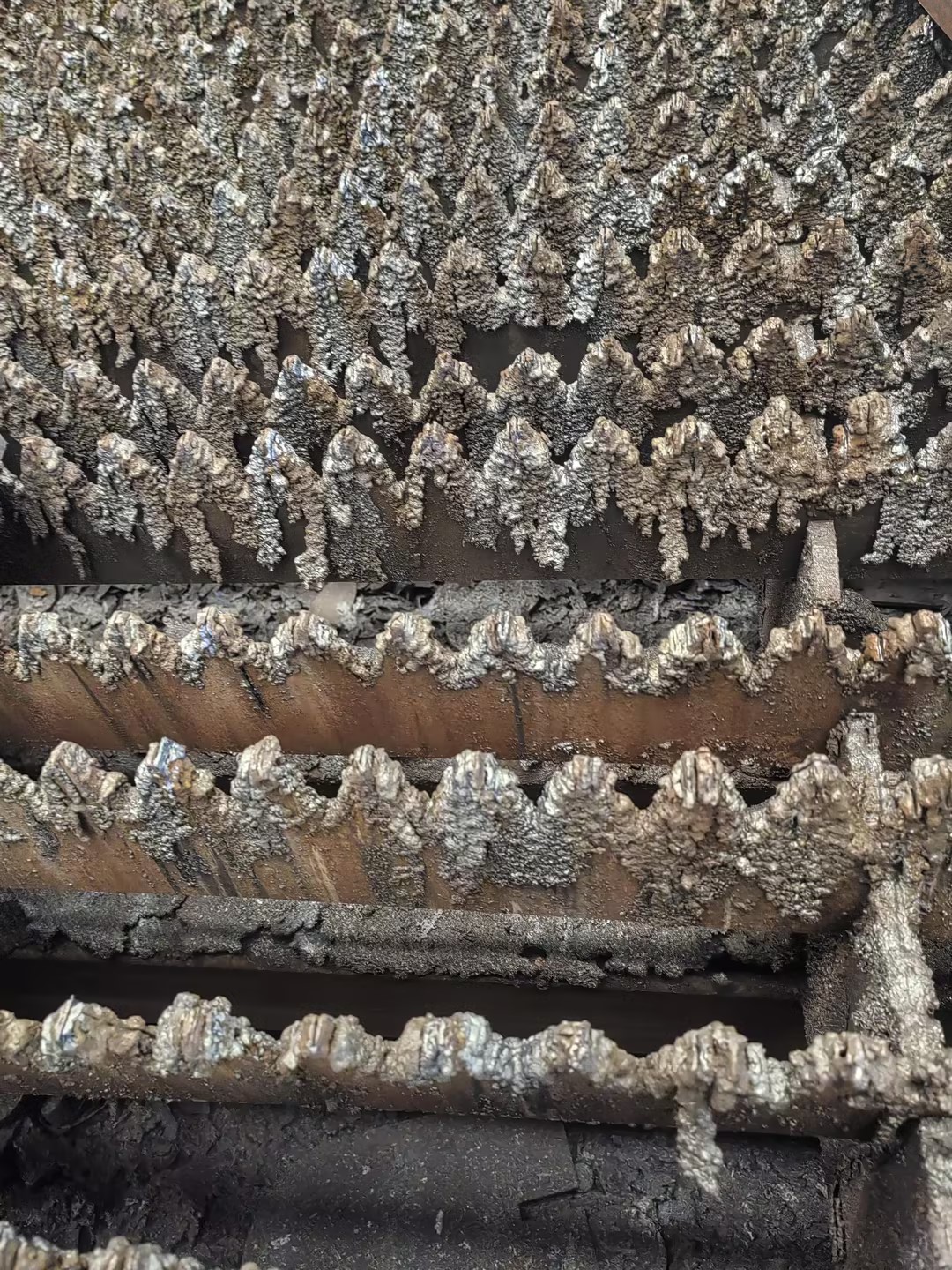 (2)新更换格栅/剑栅/齿条因渣瘤堆积变形,使用周期不足2-3个月即需报废;