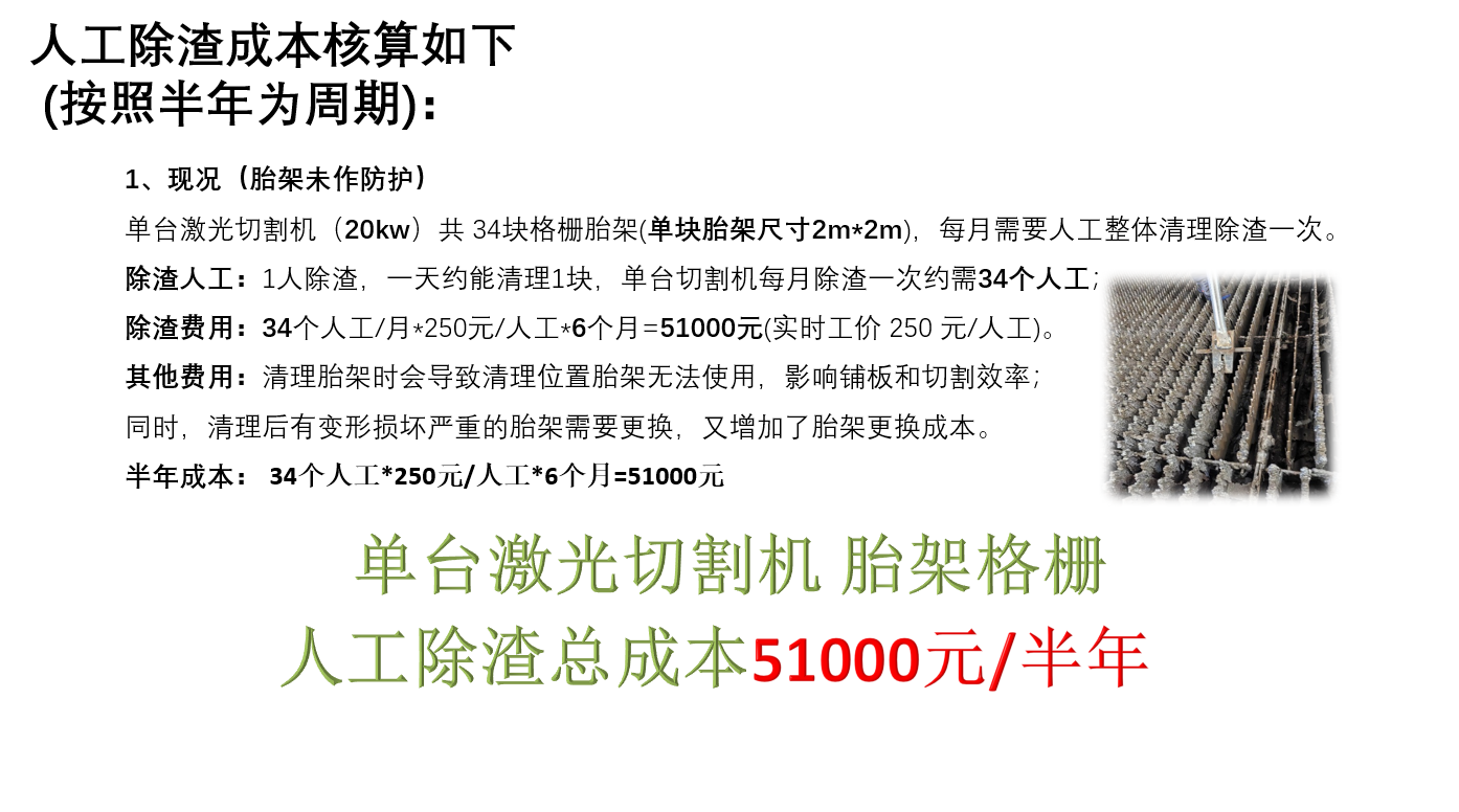 (1)激光切割后格栅/剑栅/齿条表面熔渣积聚难以清理,工人日均花1-2小时清渣仍收效甚微;
