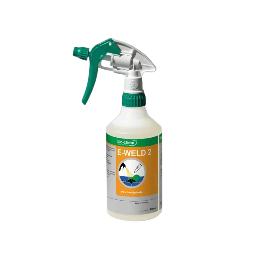 在焊缝两侧边缘各 20-40 毫米范围内,均匀喷涂一层薄而致密的 E-Weld 2 防飞溅剂。该操作的核心目的是在工件表面形成防护膜,阻挡高温飞溅物与基体金属粘连,同时保护焊接夹具、工具免受飞溅物损伤,降低设备维护成本。